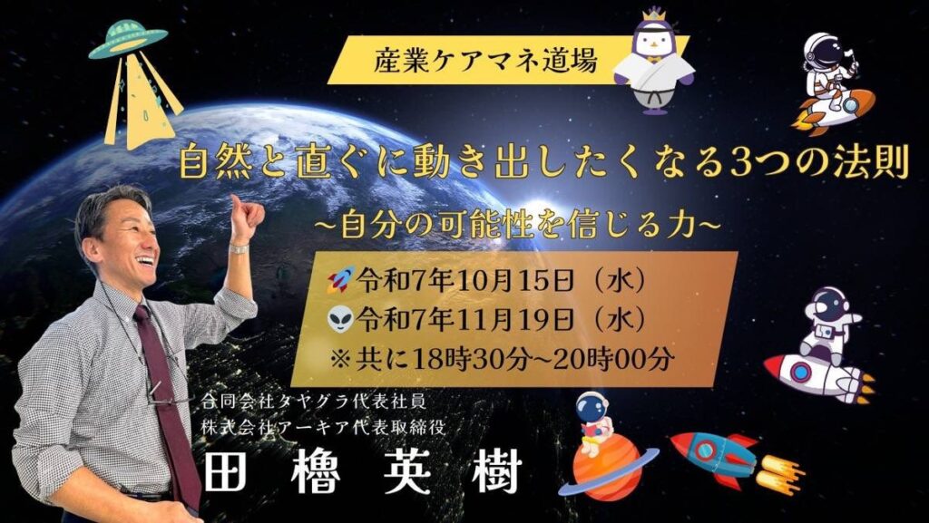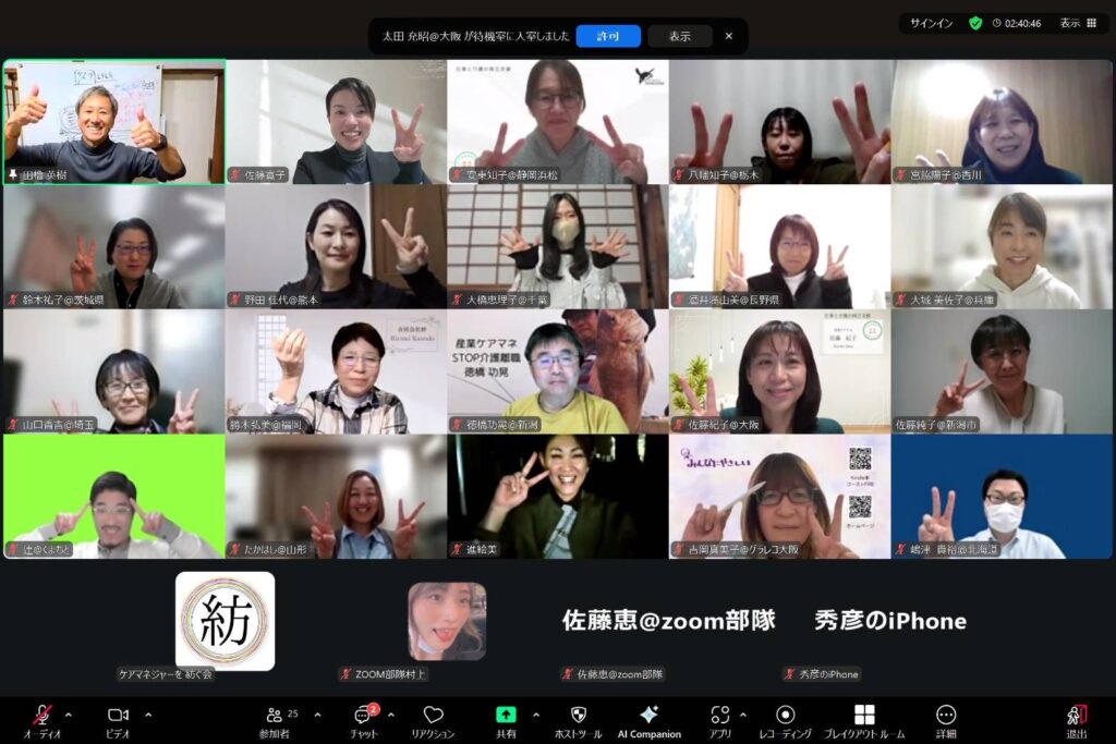 産業ケアマネージャー(産業ケアマネ)のzoom勉強会に「自然と動き出したくなる3つの法則」2025年も開催